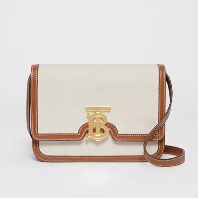 Small Two-tone Canvas and Leather TB Bag