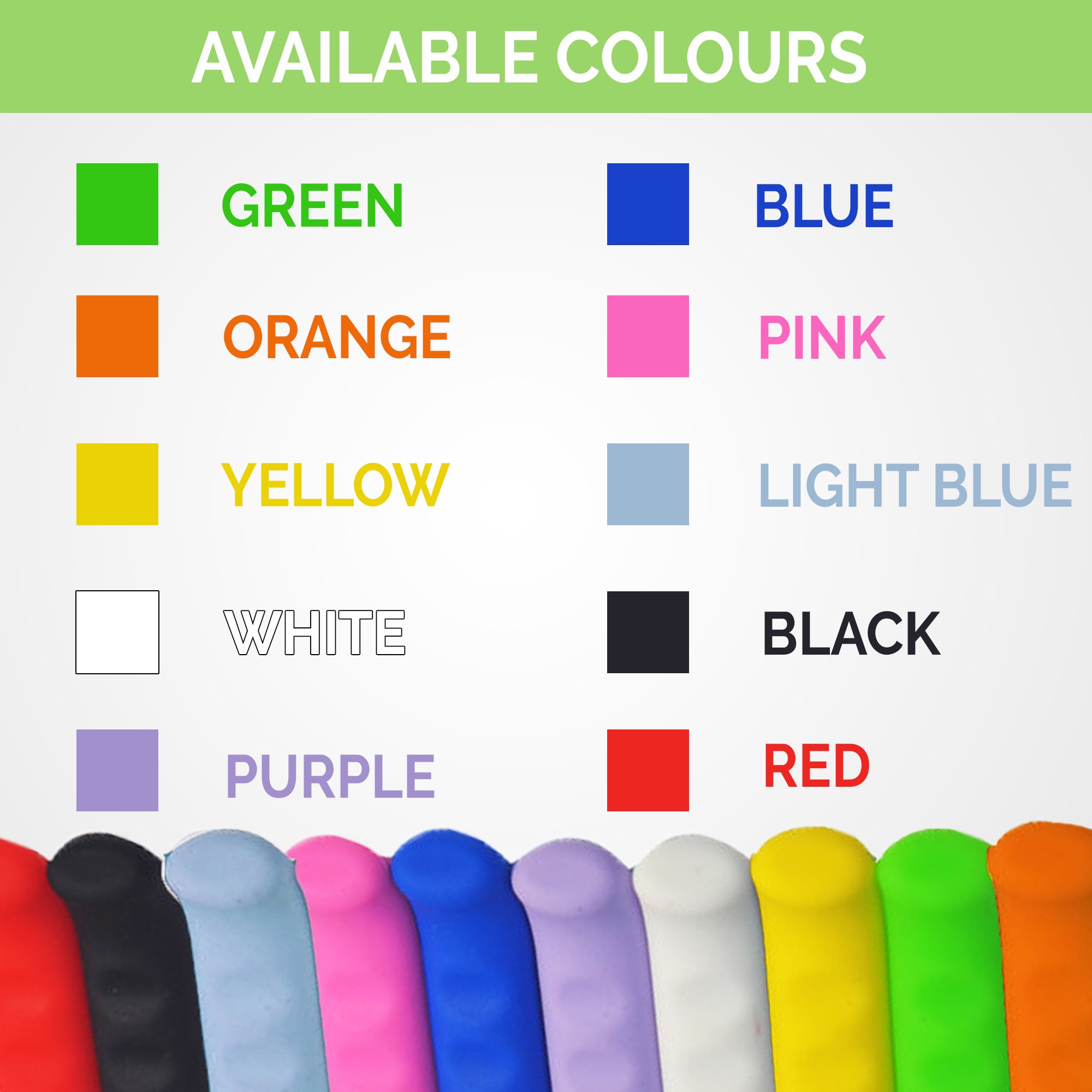 A good set of brake lever grips can really help your riding, and make sure you are always in control of the bike. Available colors in Black, Red, Pink, Blue, Purple, Green, Light Blue, White, Orange, and Yellow. The rubber grips slide over your brake lever to improve your riding by creating confidence in your braking. It increases the surface area of the lever, to provide a rubber cushion for you to squeeze.